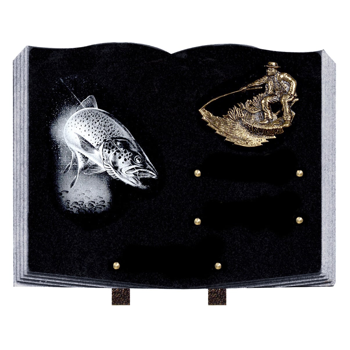 Plaque Funéraire de forme livre thÚme pÚche & nature (30cmX40cm) Grand Format
