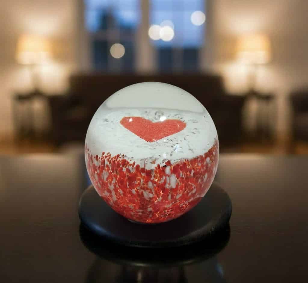 Plaque funéraire boule de sulfure de verre Cœur sur galet en granit.