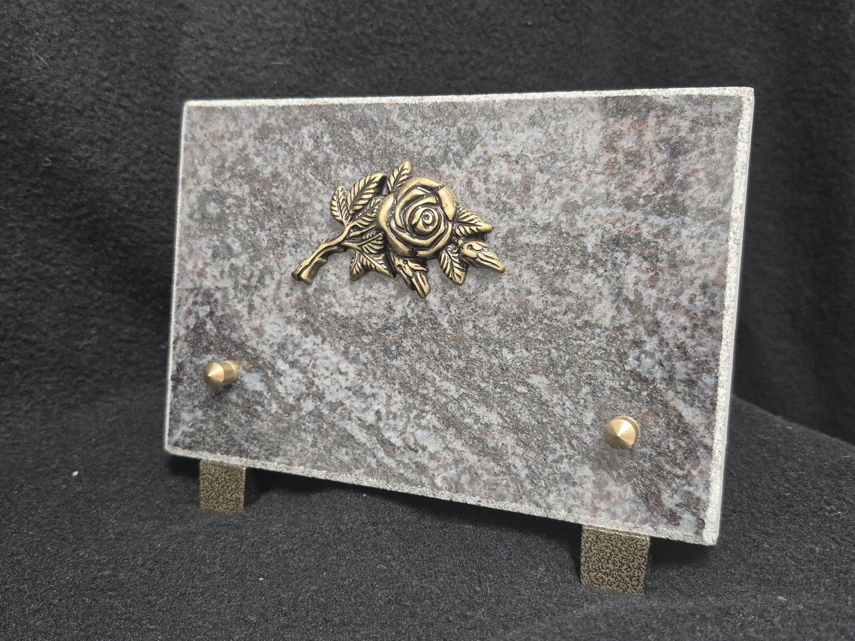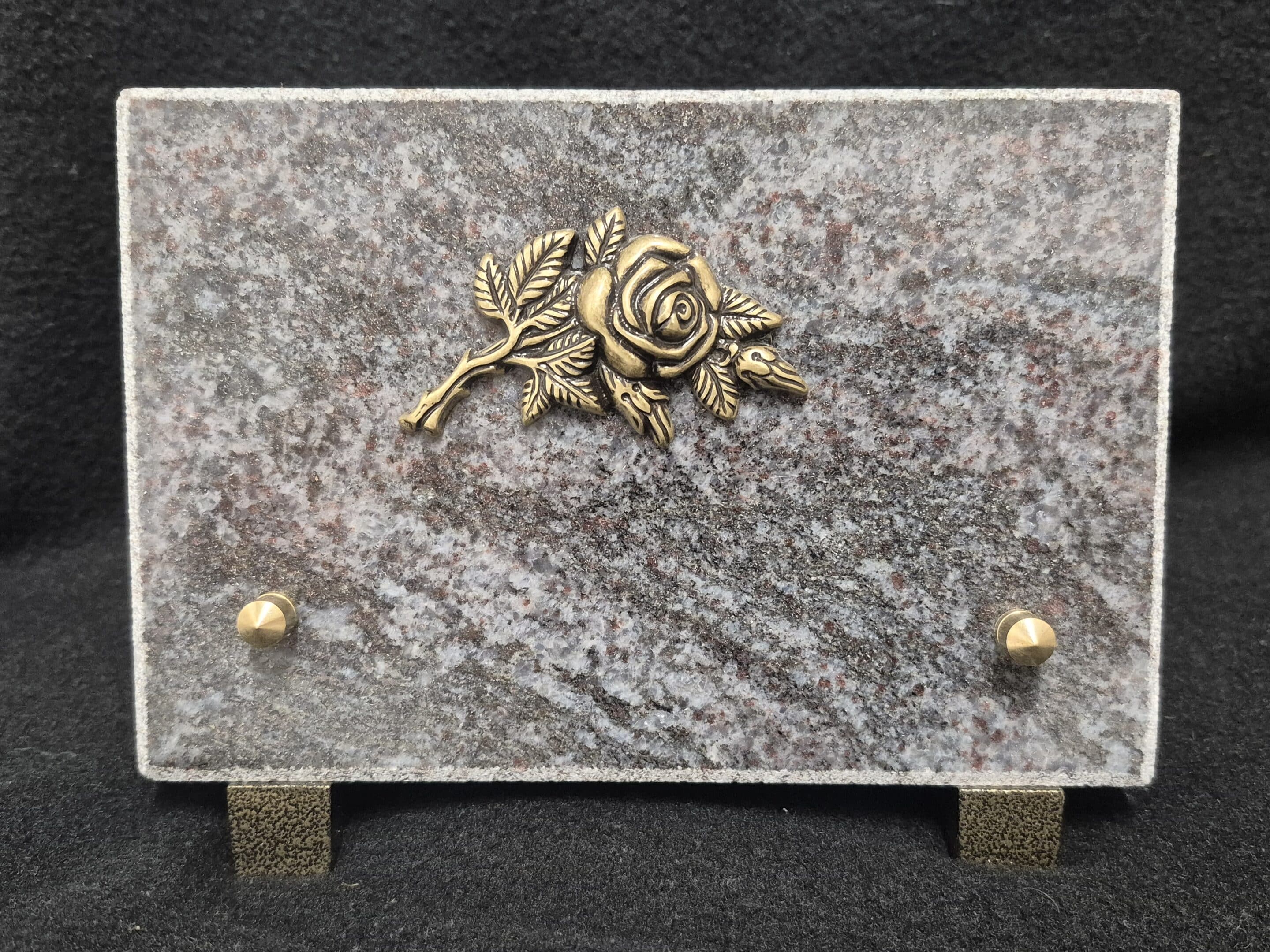 Plaque classique en granit Orion avec Bronze représentant une rose.