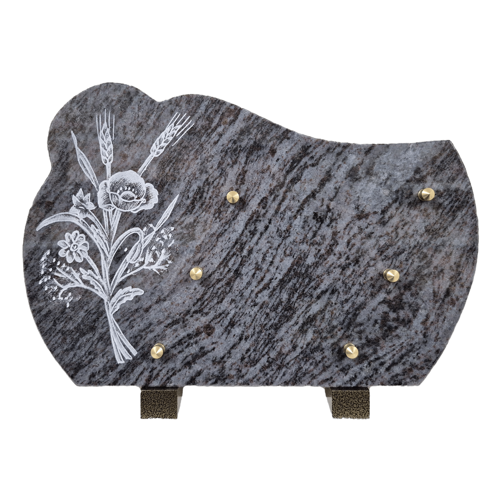Plaque funĂ©raire en granit Orion bouquet champĂȘtre (30cmX20cm)