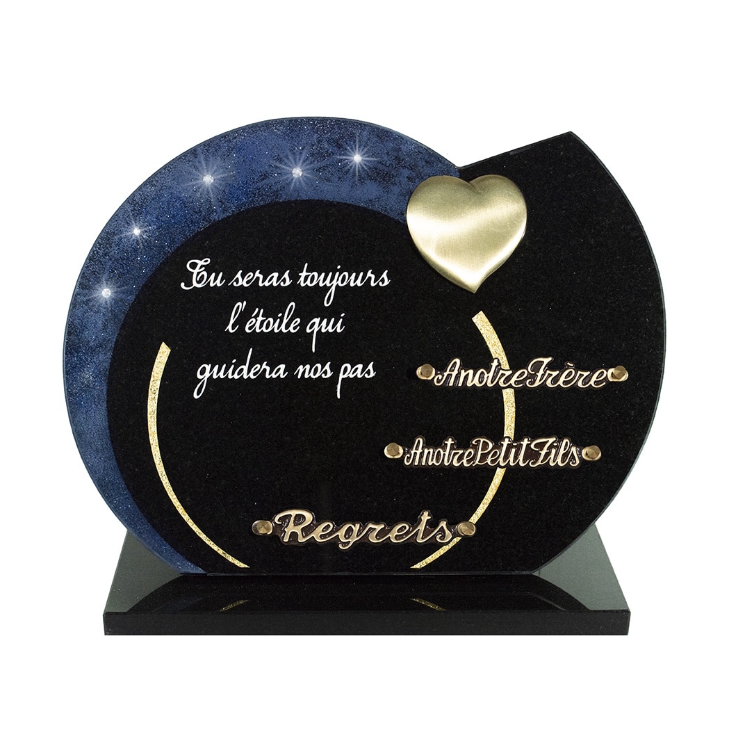 Plaque funéraire en granit noir avec cœur et ciel étoilé (39cmX30) Grand format